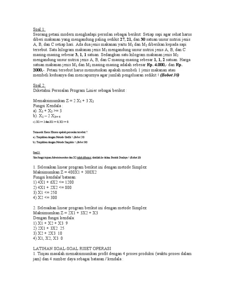Dalam linear programming metode grafik, suatu masalah yang memiliki pemecahan optimal lebih dari . Contoh soal dengan menggunakan metode simpleks teknik m 2. Contoh soal pemograman linier · riset operasi ira prasetyaningrum. Soal pilihan ganda materi riset operasi dan jawaban. Untuk membuat tas tersebut perusahaan memiliki 3 mesin.